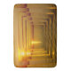 A shimmering rippling sunset over the Swedish Islands, gets a geometric extension in orange, a square spiral radiates out from the starting image.