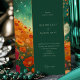 Step into a dreamlike celebration with our Sunset Meadow Dance Wedding Invitation. The front illustration captivates with a couple in a romantic embrace, enveloped by a meadow of flowers in warm tones of sunset orange, poppy red, and marigold, contrasted by cool shades of forest green and teal. Golden accents and splashes of white and yellow invoke the magical hour of dusk. The back of the invitation is equally enchanting, with its rich pine green canvas showcasing the details of your special day in elegant gold and white lettering. Inspired by the enchanting visuals of impressionistic art, each brushstroke adds texture and movement, creating a dynamic and inviting announcement for your wedding day.