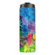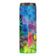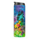 Print of my watercolor on a Thermal Tumbler featuring the Omphalea shrub visited by Sunset Moths (Chrysiridia Rhipheus), both of which are indigenous to Madagascar, Africa.