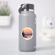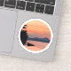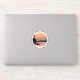 This sticker depicts a beautiful sunset with a mountain overlooking a lake.