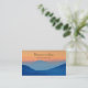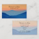 An abstract creation of a foggy mountain sunset landscape creating a dreamy afterglow effect. The hills and valleys are a deep blue colour with a large hazy looking central mountain in the background. The sky is filled with a misty orange cloudy atmosphere. The processing done to this early evening photo gives it an artistic, painted dreamy feel. Professional business card design for outdoorsy themed businesses as well as art and photography.