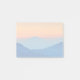 An abstract creation of a foggy mountain sunset landscape creating a dreamy afterglow effect. The hills and valleys are a deep blue colour with a large hazy looking central mountain in the background. The sky is filled with a misty orange cloudy atmosphere. The processing done to this early evening photo gives it an artistic, painted dreamy feel.
