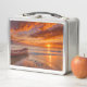 Lunch Box featuring a painting of a sunset on the beach with a rowing boat.