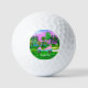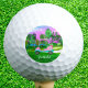This wonderful golf ball is an attractive pink leather golf cart on a sunset golf course, add your name for a very personalised golf ball.