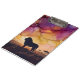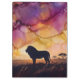 This image depicts a tranquil scene of a lion silhouetted against a vibrant sky, created with the bold, fluid strokes of alcohol ink art. It captures the peaceful beauty of nature at dusk.
