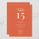 This Sunset Orange Floral Elegant Wedding Reception 5x7 Table Number showcases a beautiful sunset orange background, with modern typography and script calligraphy. It is fully customisable with the table number, couple's names, and wedding date. The formal design and wording will add a touch of elegance to your wedding celebration.