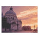 Painting of sunset with orange sky in Venice. Basilica di Santa Maria della Salute in Venice, Italy
