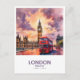 This watercolor design showcases a red double-decker bus driving by Big Ben and the Houses of Parliament as a brilliant sunset lights up the night sky over London, England. Let yourself get whisked away to the UK with this breath-taking view of the city's most iconic sights.