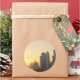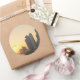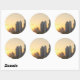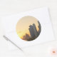 Round photo sticker with the skyscrapers in the skyline of the commercial centre of Doha, the capital of the Arabian Gulf country Qatar at sunset.