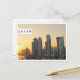 Postcard of the skyscrapers in the skyline of the commercial centre of Doha, the capital of the Arabian Gulf country Qatar at sunset with a white frame and the text: 'Qatar'.