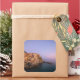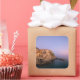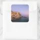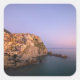 Square photo sticker with the purple sky at sunset over the lovely village Manarola, built on the rocks above the Mediterranean Sea at the coast of the Cinque Terre area in Liguria, Italy.