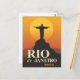 Celebrate the beauty of Brazil with this stunning postcard featuring the iconic Christ the Redeemer statue silhouetted against a golden sunset. A timeless piece of travel art capturing the spirit, warmth, and majesty of Rio de Janeiro.