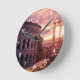 The clock did not take as long to arrive as I thought it might and was extremely well packaged. I didn't do the measurements so I didn't realize it is a little smaller than the average clock but that does not matter (just make sure you check if that's important to you).It is really nifty! It seems very solid and well made not flimsy at all. It has been going well and has kept good time in its few weeks on my wall. Nice product. Gets noticed too! Nicer in real life than the picture but true to the picture