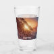 Sunset over sea and snowy pine tree glass