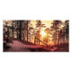Sunset panorama in the coniferous forest and sea. Wooden path and stairs in a pine forest. The White Dune and Baltic see at Saulkrasti, Latvia.