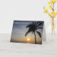 Happy relaxing retirement card featuring palm tree on a beach at sunset. Customise the card for any other occasion.