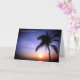 Palm trees on a beach at sunset. Customise the card for any occasion.