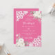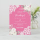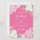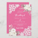 For an elegant and romantic wedding. A sunset pink coloured background decorated with white florals, roses and white lace. Personalise and add your names and details.