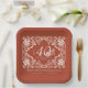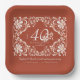 The wedding anniversary paper plate features a beautiful watercolor artwork of a white floral frame on a warm, earthy red background. The wording and numbers for milestone anniversaries (10, 20, 30, 40, 50, 60, 70, 80, or 90) can be customised easily. Personalising the plate with the names of the couple and their special date adds a personal touch to any dining table. Perfect for an elegant vintage or modern bohemian-style fall celebration, as well as anniversary gatherings throughout the year.