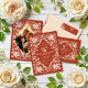 The wedding coaster showcases a lovely watercolor artwork of a white floral frame against a warm, earthy red background. The wording, including "Mr. & Mrs.," can be customised easily. It adds a personal touch to any cocktail bar and can be kept as a cherished memento of your special day. Ideal for a romantic shabby chic, elegant vintage, or modern bohemian-style fall or winter wedding, as well as weddings throughout the year.