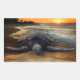 Endangered Sea Turtle on beach at sunset. Oahu Hawaii.