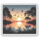 A stunning sunset scene over a peaceful lake, with flying birds and silhouetted trees creating a calm and reflective mood. Perfect for home décor and nature lovers alike