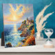 Immerse yourself in the tranquil beauty of "Sunset Serenity by the Mediterranean," a breathtaking AI-generated Impressionism coastal landscape artwork Tabletop plaque with easel art print capturing the golden hues of a sunset over a picturesque coastal village. The scene is a harmonious blend of vibrant colours and soft brushstrokes, depicting the sun's warm glow as it reflects off the calm waters, with waves gently kissing the rocky shore. Cypress trees stand tall beside charming Mediterranean villas, creating a serene and inviting atmosphere. This artwork is perfect for those who appreciate the serenity of nature and the charm of coastal landscapes. Ideal for enhancing the ambiance of living rooms, bedrooms, or offices, this piece evokes a sense of peace and relaxation. This unique work of art was produced by AI, combining advanced technology with a deep appreciation for natural beauty, resulting in a stunning visual experience.