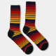 Multicolor striped design inspired by a sunset. Minimalist design in dark blue, and different shades of pink, red, orange, and yellow.