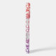 This beautiful patterned iPhone case features a gradient ombre effect in rich sunset hues of coral and violet, with a white Spanish tile lattice pattern overlay.