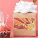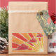 A gold and orange sun sets and the wind blows red and pink clouds across the sky. Sticker with a gold, orange, red, pink and white customisable design for you to personalise with your own text, images and ideas. An original coloured pencil and metallic ink drawing by Jess Perry.