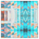 A colourful and highly abstract representation of a sunset. The colours range from the blue of the sky, to the Sun's yellow, to orange and red clouds on the horizon.