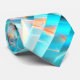 A colourful and highly abstract representation of a sunset. The colours range from the blue of the sky, to the Sun's yellow, to orange and red of clouds on the horizon.