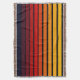 You will find all the colours of a spectacular sunset in your room. Multicolor striped design inspired by a sunset. Minimalist design in dark blue, and different shades of pink, red, orange, and yellow.