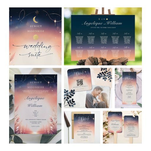 Complete your tablescape with our Moonrise to Sunset Wedding Round Menu — a stunning blend of romance and warmth inspired by the shifting skies. Designed to perfectly match the full wedding set, this menu features soft gradients, elegant typography, and celestial-inspired details that reflect your dreamy day from golden hour to twilight.