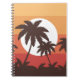 A tropical palm beach at sunset evokes pure paradise. A vintage illustration that whispers of tranquillity.