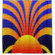 Sun Graffiti brick wall is a digital work of art with a dark blue gradient background and yellow redish orange gradient sun at the bottom, sun beams beaming up and outward.