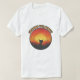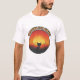 This retro T-shirt design features a warm sunset gradient in shades of orange, red, and yellow, with the silhouette of a curious animal (cute cat ) in the foreground. The distressed texture adds a vintage feel, perfect for nature lovers and retro enthusiasts.
