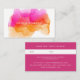 Chic watercolor appointment cards for your salon, spa or beauty services feature your name or company name layered on a blooming inkblot illustration in bright, colourful sunset hues of fuchsia pink ad goldenrod. Add your cancellation policy, custom heading, and contact information to the back in white on magenta. Includes space to write in your customer's next appointment date and time.