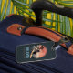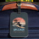 Sunset Wave-Riding Cat Luggage Tag: A black cat surfing on a wave, with the sun setting in shades of pink and orange, creating a whimsical and surreal scene.