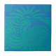 Blue and Teal sunset and ocean waves graphic design in Art Nouveau Bohemian coastal beach style.