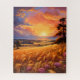 This puzzle features a vibrant illustration of a sun setting over a golden wheat field and purple flowers.