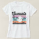 A cool vintage style design featuring tropical palm trees in the sunset, that reads: Sunsets and palm trees.