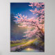 A captivating scene unfolds as a beautiful sakura tree stands gracefully by a winding path that leads towards the radiant sunset. The tree's delicate pink blossoms create a breathtaking display against the golden hues of the descending sun.