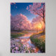 Behold a tranquil river, adorned with sakura trees along its peaceful banks. As the sun gracefully descends, its warm hues bathe the landscape in a captivating glow. The sakura trees, in full bloom, create a breathtaking tapestry of delicate pink petals, infusing the scene with ethereal beauty. Immerse yourself in this digital artwork, where the harmonious union of nature's grace and the allure of a sunset create a serene symphony for the soul.