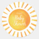 Sunshine Baby Shower round stickers and matching party celebration range.  Add your own name to customise.  Matching items available.  Original art from artists own illustrations. Please use the message me button below for help with further customisation and special requests.  © Zoe Chapman Design