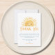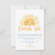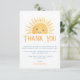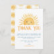 Thank family and friends for coming to your baby shower with this cute sunshine baby shower thank you card. It says thank you in stylish typography with an adorable yellow watercolor sun. The message is customisable. The back is decorated with a smiling sun pattern. Original Watercolor © Michele Davies.