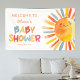 Brighten up your special day with our 'Sunshine baby shower welcome banner'. This must-have addition to your baby shower features a radiant, cheerful sun with a delightful face, along with a customisable text template. Let's make your baby shower as warm and inviting as the morning sun with this unique welcome sign.