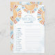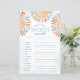 Looking for a sun themed baby shower game? Look no further! This sunshine baby shower word scramble game is the perfect activity to entertain your guests. This summer theme is perfect for any gender, boy or girl, with relaxing tones of blue, orange, and yellow. Personalise all of the text to accommodate your event. This collection contains invitations, thank you cards, inserts, games, and decorations for all of your event needs!