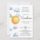 This Sunshine Clouds Baby Boy Shower Invitation is a charming and delightful choice for celebrating the arrival of a baby boy. The watercolor art featuring a cheerful sun and fluffy clouds creates a warm and inviting atmosphere for the special occasion. The design is perfect for a baby shower, with its sweet and playful aesthetic that is sure to bring a smile to the faces of guests. The soft colours and whimsical imagery make this invitation a lovely way to set the tone for a joyous celebration of new life.