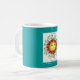 Basic mug decorated with the "Sunny Daydreams" design.  Design is surrounded by a peacock background and trimmed in a yellow orange border